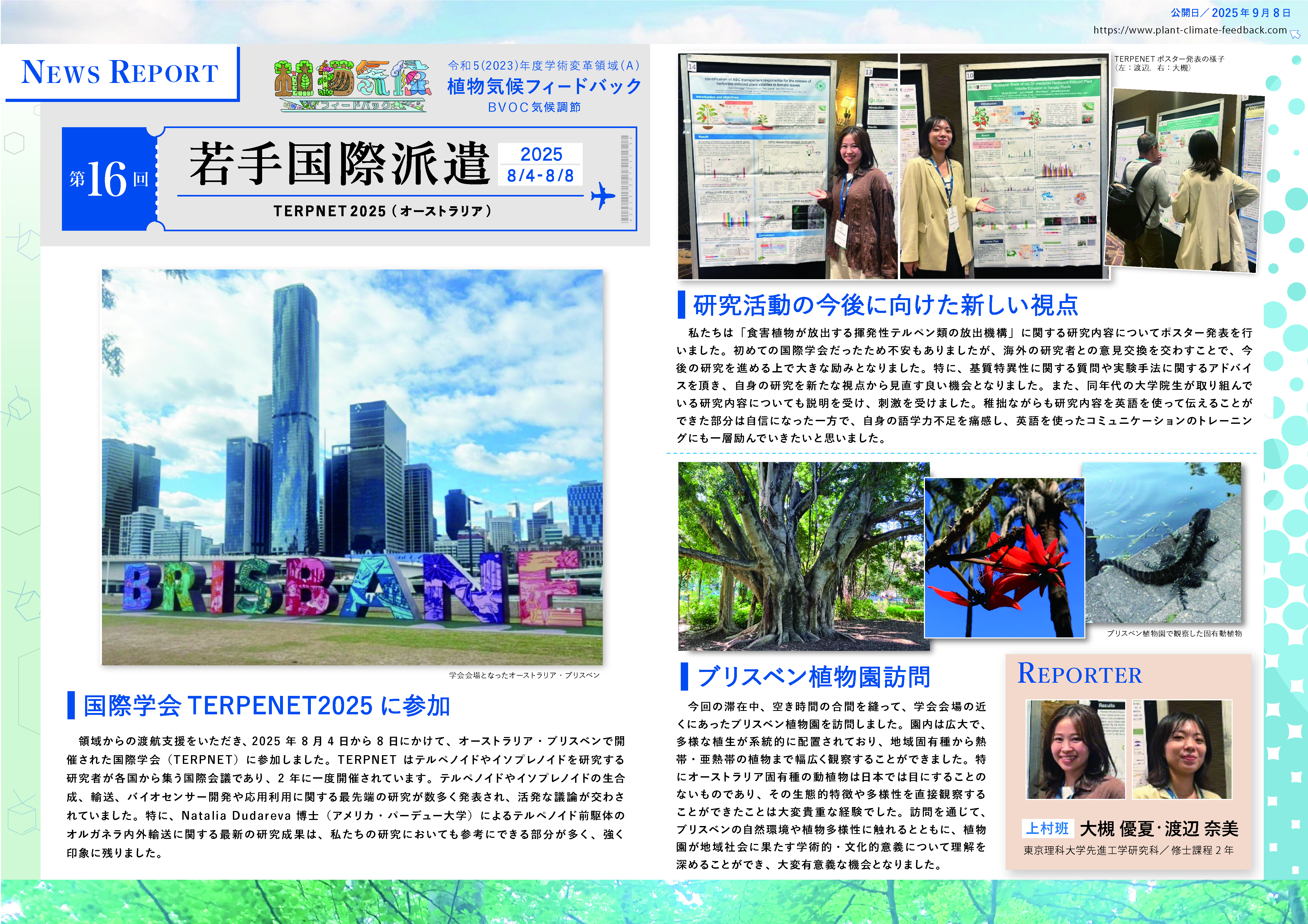領域から支援をいただき、2025年8月4日から8月8日にかけて、オーストラリアで開催されたTERPNET2025に参加し、ポスター発表を行いました。